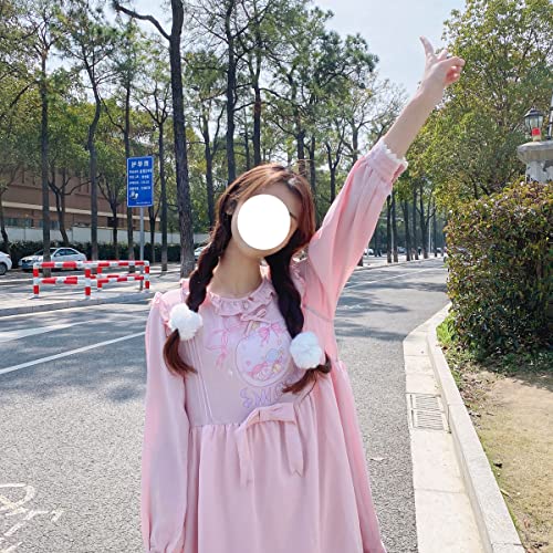 • Features : Round Neck , Long Sleeve with Lace Hem , Cartoon Letter Graphic Print , Lovely and Cute , Solid Color , A Line Pink Dress , Back with One Button , Sweet Bow Front , Loose and High Waist , Big Swing with Cute Ruffle Hem Baby Doll Dress for Teen Girls , 16-24 Years Women , Junior In Spring , Summer , Autumn Make Look More Kawaii and Fashionable.