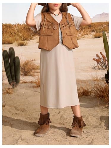 Verdusa Girl's Western Fringe Crop Vest 70s Hippie Boho Tassels Cowgirl Jacket 6