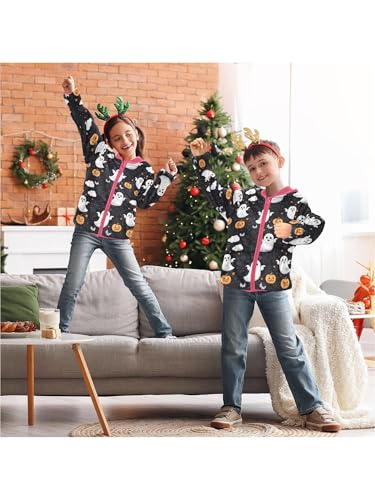 Halloween Cute Ghosts Pumpkins Girls Fleece Jacket Girls Jacket Girl Coats Zip Up Hoodie Children Outerwear 2-3T 5