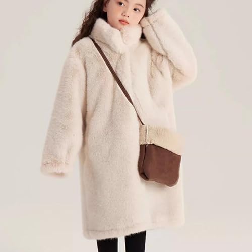 Girls Faux Fur Jacket Long Trench Coat Fuzzy Fleece Winter Warm Stand Collar Windbreaker Overcoat 6-16 Years 7