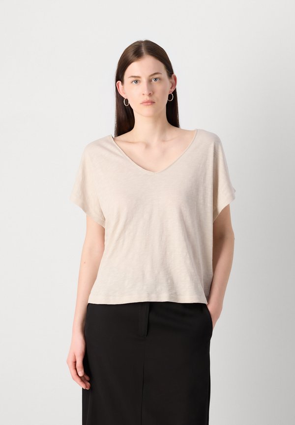 V NECK SHORT SLEEVE - Basic T-shirt - silky stone 1