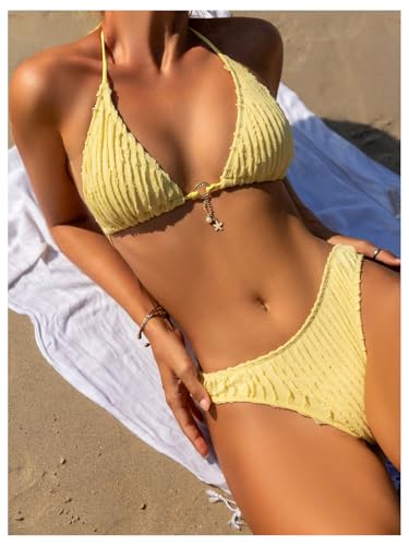 More information about SHENHE Women's Two Piece Bikini Set Tie Back Textured Cheeky Halter Swimsuits Swimwear