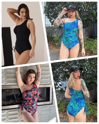 More information about One Shoulder One Piece Swimsuits - Women Tummy Control Bathing Suits Ruched Full Coverage Side Tie Swimwear