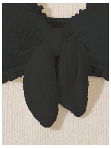 WDIRARA Women's Ruffle Trim Strapless Bandeau Bikini Top Knot Front Bathing Suit Tops 6