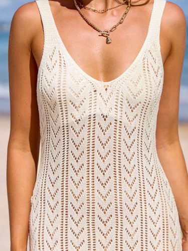 More information about CUPSHE Womens Crochet Swimsuit Coverup Sleeveless Mesh Bathing Suit Cover Ups Split Maxi Beach Dress