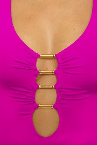 • [ Flattering Plunge Cut ] – Features a deep V-cut with a center front cutout and elegant gold tube bead accents for a sexy yet elevated finish. Perfect for summer beachwear or bride bathing suit looks on vacation or honeymoon getaways.