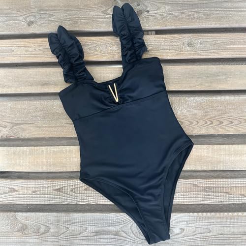 SPORLIKE One Piece Swimsuit Women Ruffle Adjustable Straps Bathing Suit Padded Swimwear 1