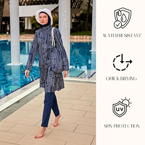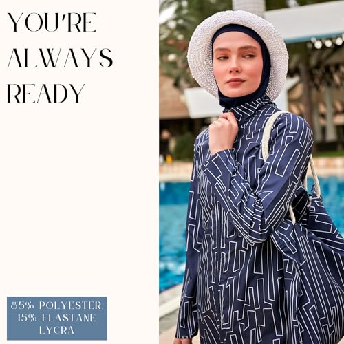 Islamic Full-Length Patterned Modest Swimsuit for Women | 4 PCS Muslim Burkini Set | Full Coverage Long Sleeve Rash Guard 5