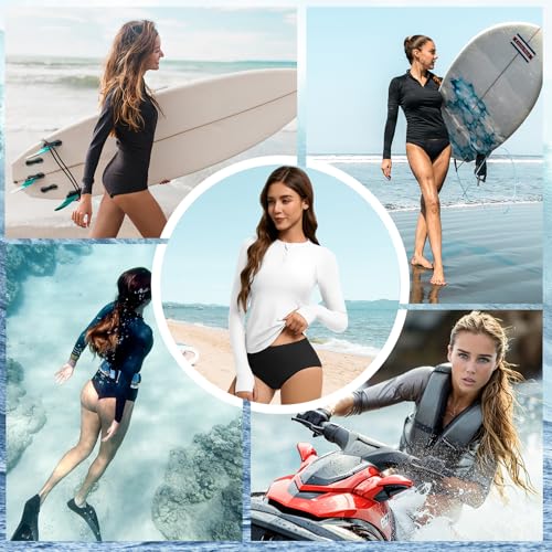 • ⇒ Thumb Holes&Zipper Closure: Our swim shirts has a fashion design, Thumb holes to keep the long sleeves in place and protect more of your hands.Zipper design for easy put on and off. Features with mock neck and long sleeve,giving you more freedom to wear, shows your perfect body.