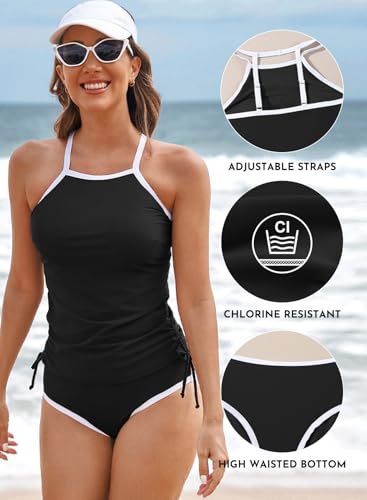 HOT ! Aleumdr 2 Piece Tankini Swimsuits for Women Tummy Control Bathing Suit Halter Tankini Tops with High Waisted Shorts