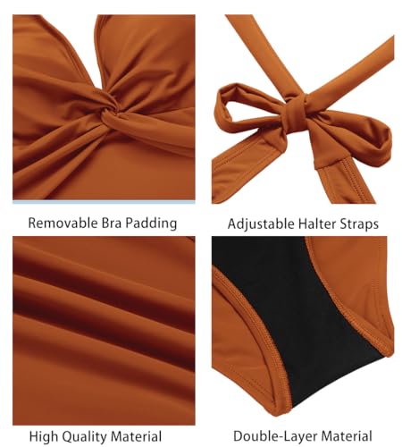 AI'MAGE Women's One Piece Swimsuits V Neck Tummy Control High Waisted Bathing Suit Halter Top Swimwear 3