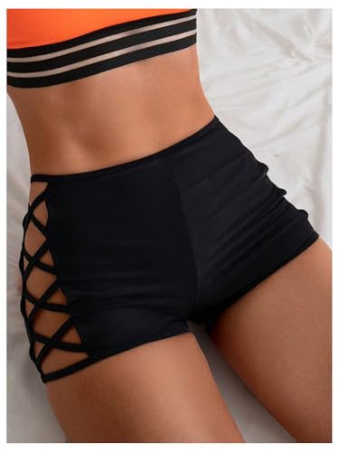 HOT ! SweatyRocks Women's Criss Cross Swim Shorts High Waisted Bathing Suit Bottoms Swimwear