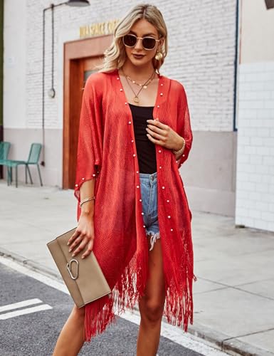 • ELEGANT DESIGN: This kimono features a sophisticated design with pearl embellishments and delicate fringe detailing, adding a touch of glamour to your beachwear wardrobe. Its open-front style makes it easy to slip on and off, perfect as a stylish swimsuit coverup for women.