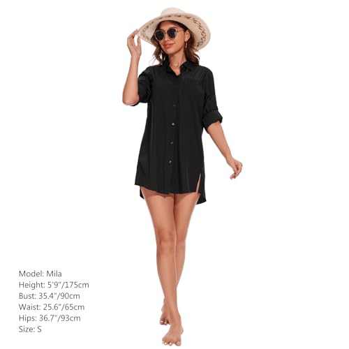 Lightbare Women’s UPF 50+ Button Down Shirt Dress Collared Long Sleeve Blouse Swimsuit Coverup Boyfriend Shirts Loose Fit 3