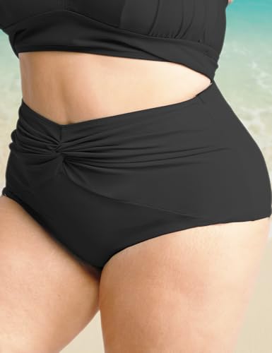 Womens High Waisted Bikini Bottoms Plus Size Full Coverage Swim Bottom Twisted Tummy Control Bathing Suit Only 2025 3