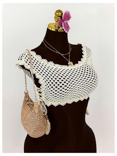 • Boho cover up top for women features a crochet and lace up design that adds a touch of elegance and a see-through pattern that gives it a playful and flirty appeal