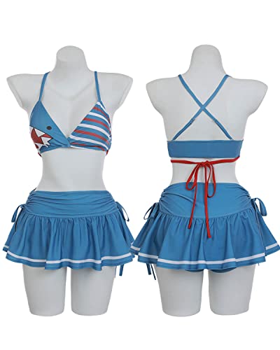 • 🏖HEAD-TURNING GAWR GURA SWIMSUIT: Adorable Gawr Gura pattern, this bikini cover up is sure to turn heads at the beach or pool. The bikini top features cross back with adjustable strap. The high waist bottom with skirt, tummy control and provide full coverage. The shark pattern bathing cover up is eye-catching and unique, perfect for when you need a break from the sun.