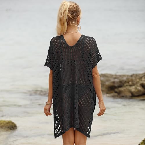 Women's Loose Swimsuit Crochet Sexy V Neck Swim Coverups Bathing Suit Bikini Cover up Vacation Summer Beach Dresses 5