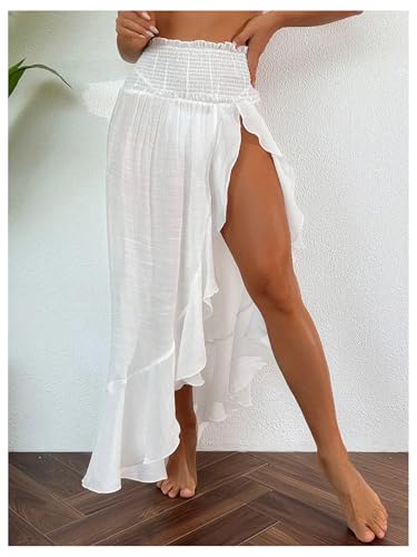 HOT ! SweatyRocks Women's Sheer High Slit Ruffle Trim Bathing Suit Beach Cover up Skirt