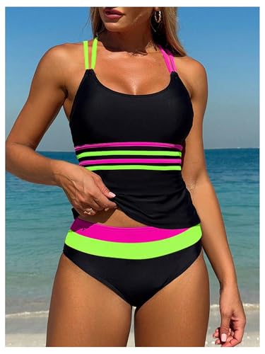 • Features: Two piece set, tankini swimsuits for women, colorblock, striped, tummy control, crisscross, scoop neck, sleeveless