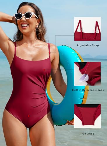 Aleumdr Women's One Piece Swimsuit Ruched Tummy Control Bathing Suit Square Neck Push Up Swimwear 1