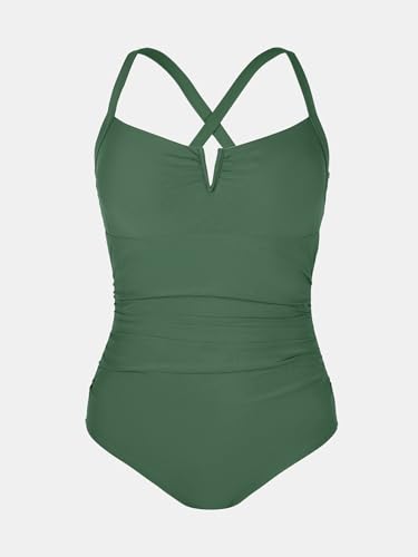 • Design: This curvy one piece swimwear with a V neck for elegance, a ruched torso for a flattering fit, and adjustable crisscross straps. The back cutout adds style.