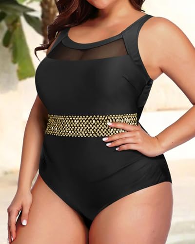 Daci Plus Size One Piece Swimsuit for Women Mesh Tummy Control Bathing Suit Swimwear 5