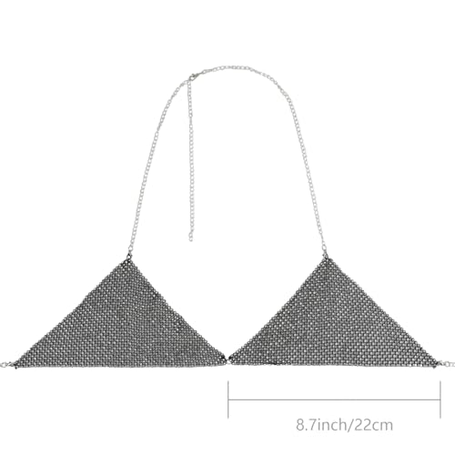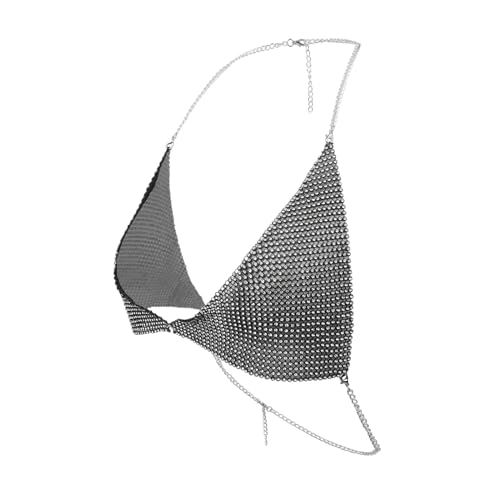 PURFUN Sparkly Metal Rhinestone Crop Top Women Halter Neck Triangle Bra Body Chain Raves Beach Pool Party Bikini Top Cover Up 6