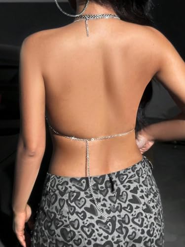 • Features: Sexy see-through deep V neck halter triangle bra with backless design, decorated with shining glittering rhinestones, make this top look more sparkly and stereoscopic. Let you stand out in any occasion and show your charming figure. Perfectly pair with your hot pants, high waist skirt, mini skirt, jeans etc
