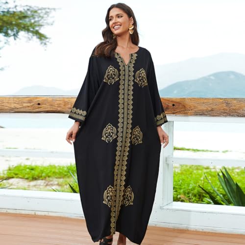 • Elegant and Oversized Design: Our CGAOMP caftan dresses for women feature a V-neck and batwing sleeves, offering a relaxed and flowing silhouette perfect for all body types, including plus size caftans