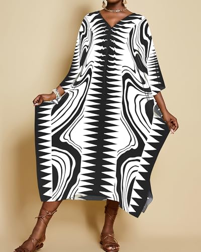 Bsubseach Kaftan Dresses for Women Geometric Print Caftan Long Beach Swimsuit Cover Up Loungewear Dress 6