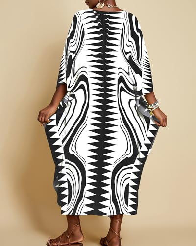 Bsubseach Kaftan Dresses for Women Geometric Print Caftan Long Beach Swimsuit Cover Up Loungewear Dress 4