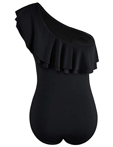 Hilor Women's Slimming One Piece Swimsuits Swimwear Ruffled Asymmetric One Shoulder Bathing Suits 6