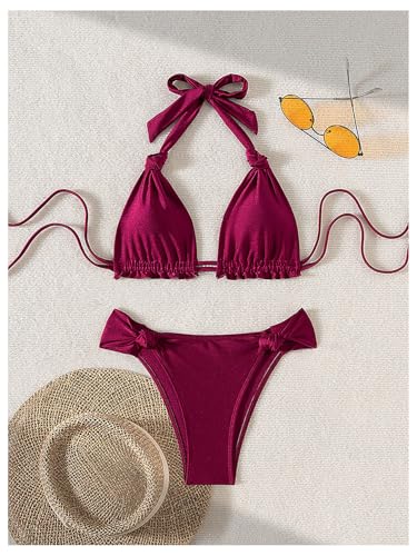 More information about SOLY HUX Bathing Suit for Women Halter Triangle Knot Bikini Set Two Piece Swimsuit