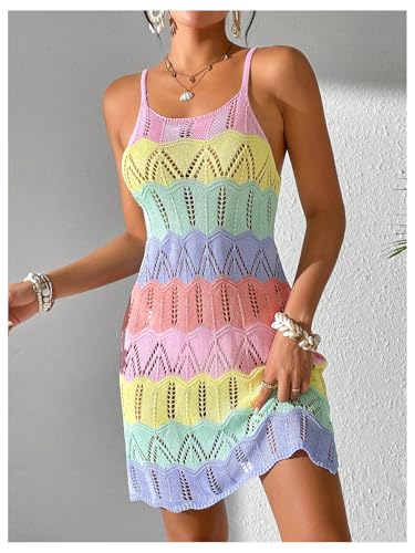 Milumia Women's Colorblock Crochet Cover Up Sleeveless Hollow Out Beach Dress 6