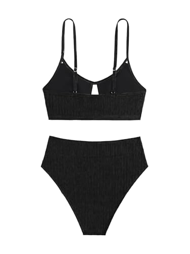 HOT ! Lilosy Sexy High Waisted Cutout Ribbed V Cut Bikini Set 2 Piece Swimsuit