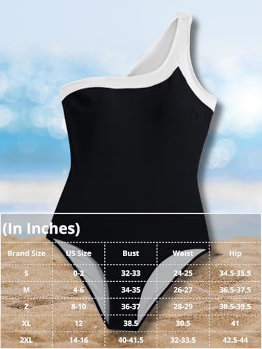 One Shoulder Color-Block Swimsuit, Modest Full-Coverage, Vacation Pool Party 6
