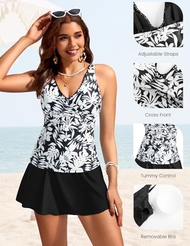 • Trendy tankini swimsuits feature sexy v neckline to make you look more charming and feminine, front cross pleated on bust provides supports and push up bust, adjustable shoulder straps for perfect fit, bathing suits with skirt tummy control suitable for women of most body shapes