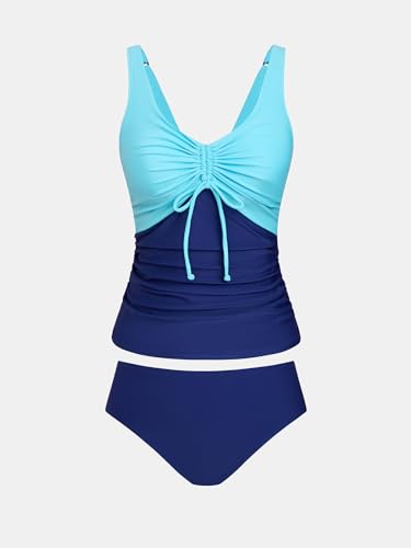 • Design: This chic tankini bathing suit with its v neck design and alluring front drawstring detailing, it's the perfect choice for turning heads. The mid rise two piece swimsuits with ruched waist and adjustable straps brings a playful touch.