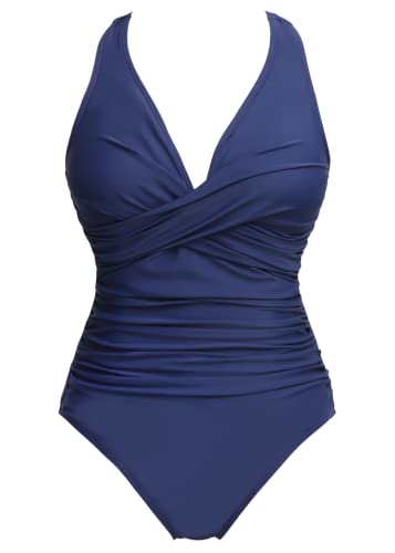 COCOPEAR One Piece Crossover Swimsuit High Waisted Tummy Control Swimwear Ruched Halter Push Up Bathing Suits for Women 1