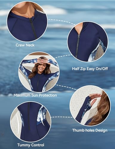 • Round neckline & Long raglan sleeves: one-piece Long sleeve rashguard, streamlined and figure-flattering, with high neckline for sun protection, adds a touch of surf-inspired authenticity to your beach look so you can stay protected and stylish.