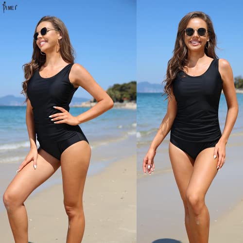 • High neckline with a medium back height; tank swimsuit; U back with black side panels for a defined slimming effect; Stretch fabric for a comfortable fit; Long torso bathing suit, one piece swimsuits, Plus size swim dress, flowy swimsuits for women