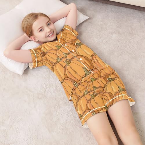 senya Pajama Sets Silky Button Down Nightwear Sleepwear Size 5-14 Years Many Pumpkins 1