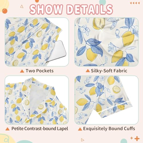 More information about Lemon Cute Simple Pattern Summer Satin Pajama Set, Cute Button-Down Sleepwear Pj Set for Sleep Wears