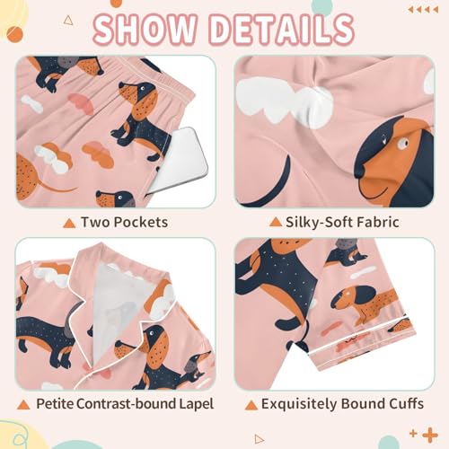 senya Pajama Sets Silky Button Down Nightwear Sleepwear Size 5-14 Years Cute Seamless Pattern with Dogs 6