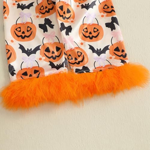Kids Baby Girl Halloween Silk Pajamas Set Button Down Pumpkin Feather Trim Sleeve Shirts Tops and Pants Satin Pj Sets 6