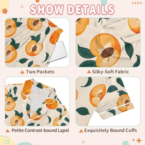 More information about Peach with Leaves Pattern Summer Satin Pajama Set, Cute Button-Down Sleepwear Pj Set for Sleep Wears