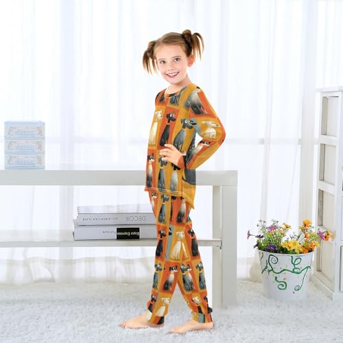 Long Sleeve Pajama Set for Girls Boys,Dogs Sitting in Squares Comfy Crewneck Sleepwears,Soft Kid's Homewear Clothes Underwear Sets 3T 6