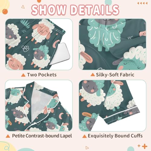 ALAZA Sheep Green Satin Pajamas Set Short Sleeve Button Down Sleepwear Summer Pjs 2 Piece 7