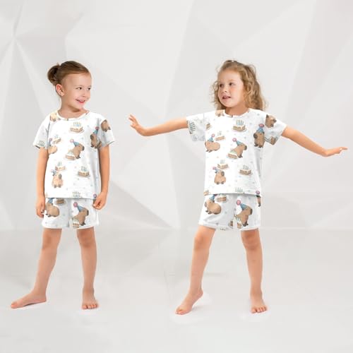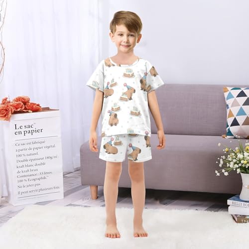 Pajama Short Sets Capybara Birthday Cake Pattern Soft Cotton Summer Sleepwear 2 Piece PJS Size 5-14T 6